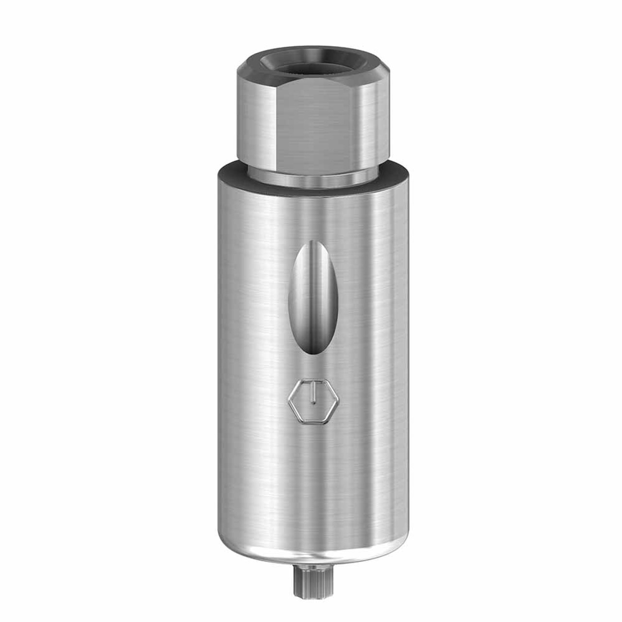 This Angulated Screw Channel premilled titanium blank is engaging, is 10mm in diameter, and has a total mill-able length of 20mm.