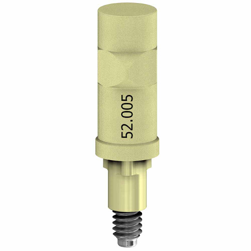 This scan body is made of titanium that includes ZrN coating to reduce glitter effects and is designed for both intraoral and desktop scanning. It has a fixed internal screw for hand tightened.