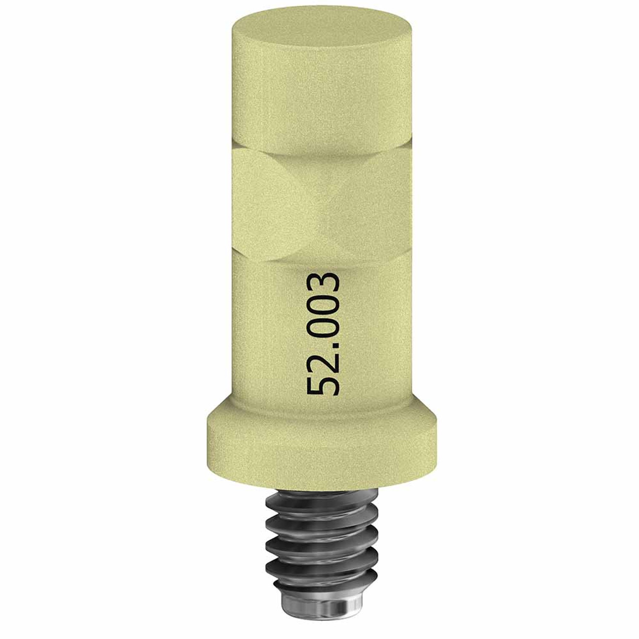This scan body is made of titanium that includes ZrN coating to reduce glitter effects and is designed for both intraoral and desktop scanning. It has a fixed internal screw for hand tightened.