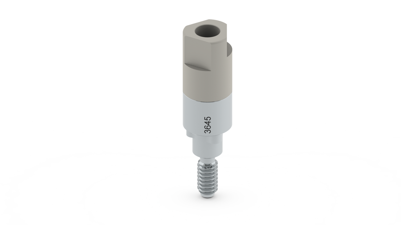 Sherlock Scan Body for Nobel Replace. Laboratory and intraoral use with captive screw design. Peek top for scanning, steel body, and titanium screw for durability.